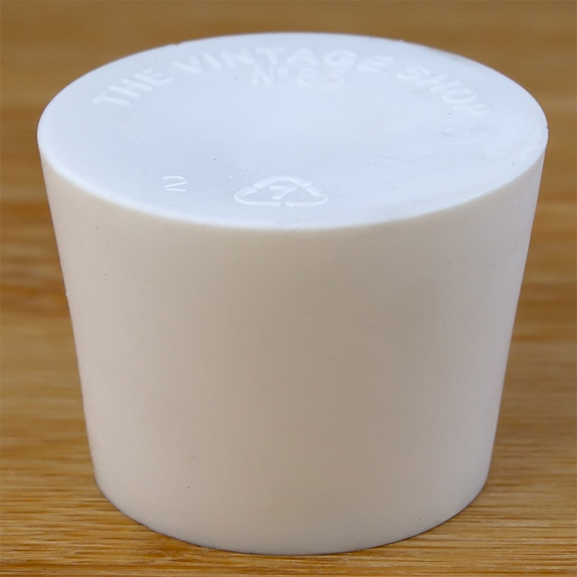 #6.5 stopper - solid. Top diameter 1.34 inches (34 mm), bottom diameter 1.06 inches (27 mm), length 1 inch (25 mm).